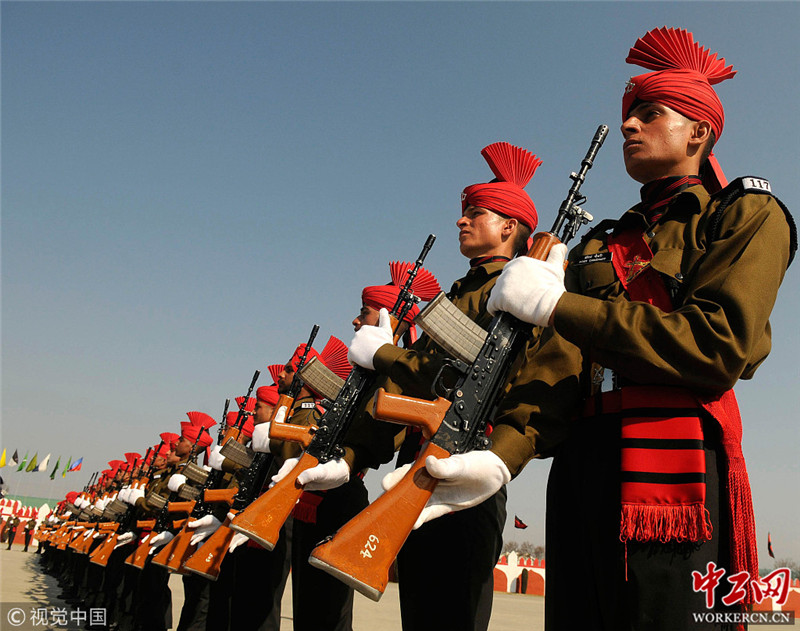 当地时间2019年3月9日,印控克什米尔斯利那加,查谟克什米尔轻步兵团(JKLIR)的152名新兵在当地军事基地参加阅兵仪式后正式加入陆军,与亲人拥抱庆祝。图片作者:Hindustan Times/视觉中国