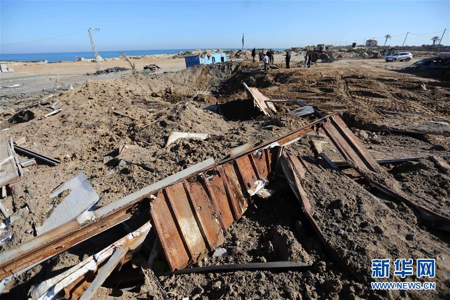 3月9日,在加沙地带南部城市汗尤尼斯,人们清理空袭现场。 以色列国防军8日夜间至9日凌晨出动战机,轰炸了巴勒斯坦伊斯兰抵抗运动(哈马斯)在加沙地带的多个目标。 新华社发(哈立德·奥马尔摄)