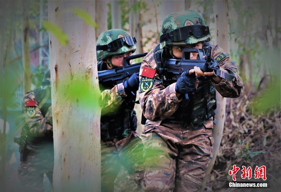 武警广西总队机动支队特战队员在密林中交替掩护前进。中新社发 余海洋 摄 图片来源:cnsphoto