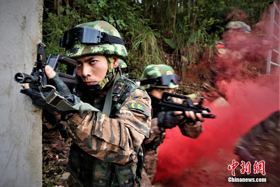 一名特战队员掩护队友前进。中新社发 余海洋 摄 图片来源:cnsphoto
