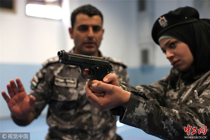 当地时间2014年2月20日,约旦河西岸杰利科,巴勒斯坦女警察参加训练,巴勒斯坦准备培养一支专门在防暴行动中发挥作用的女性警察团队。据悉,这一团队有220名女性警察组成,将被分配至约旦河西岸的众多地区。