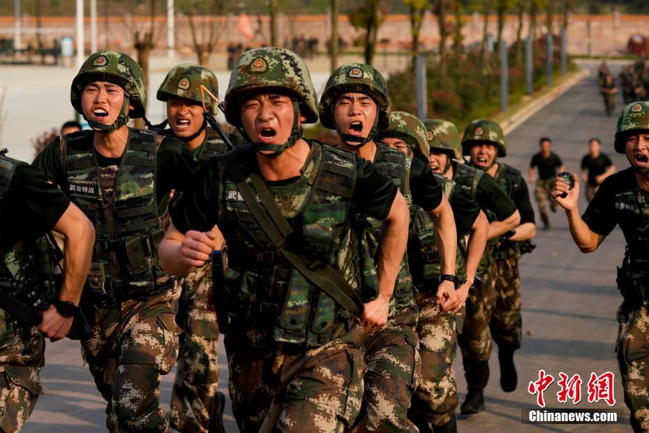 3月13日,武警黔西南支队官兵在进行负重奔袭训练。近日,为提升部队军事训练水平,强健官兵体魄,夯实战斗力根基,武警黔西南支队进行日常练兵,训练场上官兵热情高涨,各项训练科目如火如荼进行。中新社记者 贺俊怡 摄