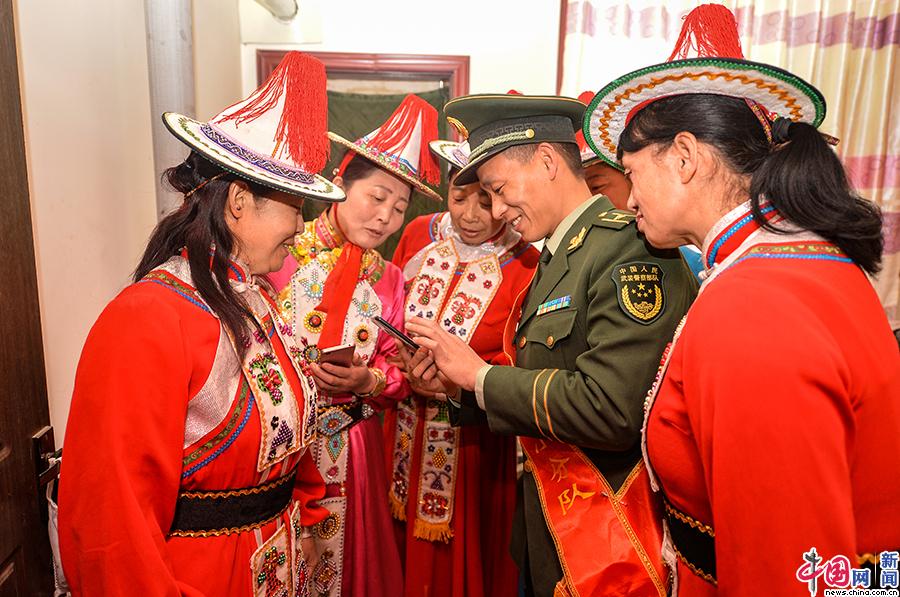 宣讲小分队官兵为少数民族群众解读“两会”政府工作报告。侯崇慧 摄