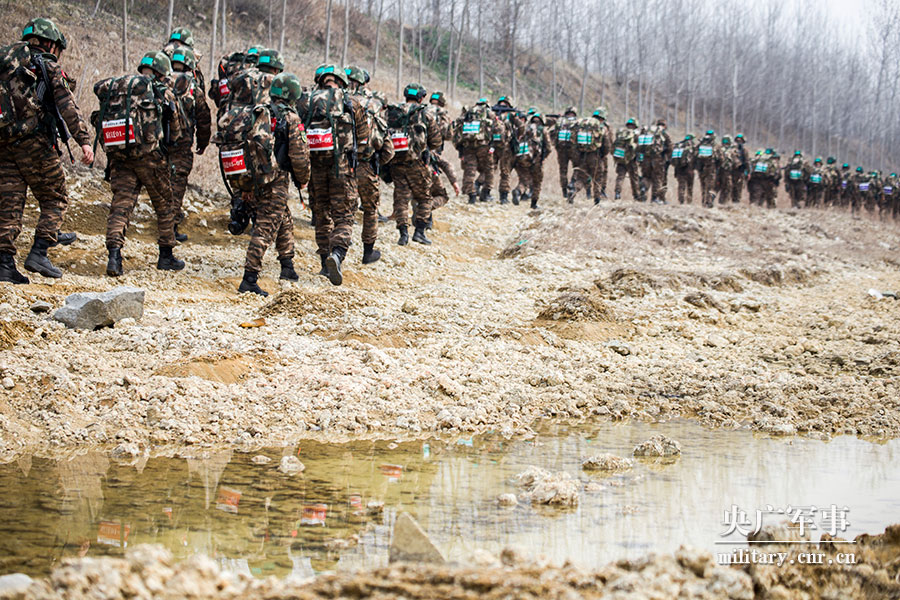 3月18日,在五公里武装越野途中,特战队员团结协作,互帮互助,战友情深。吴佳洪摄