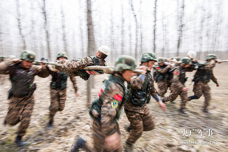 3月18日,组织特战队员进行丛林地快速转移伤病员一公里训练。吴佳洪摄