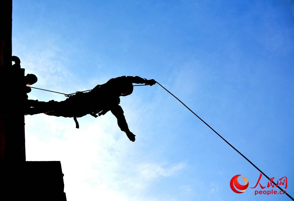 武警江西省总队攀登科目比拼 特战队员变身“蜘蛛侠”
