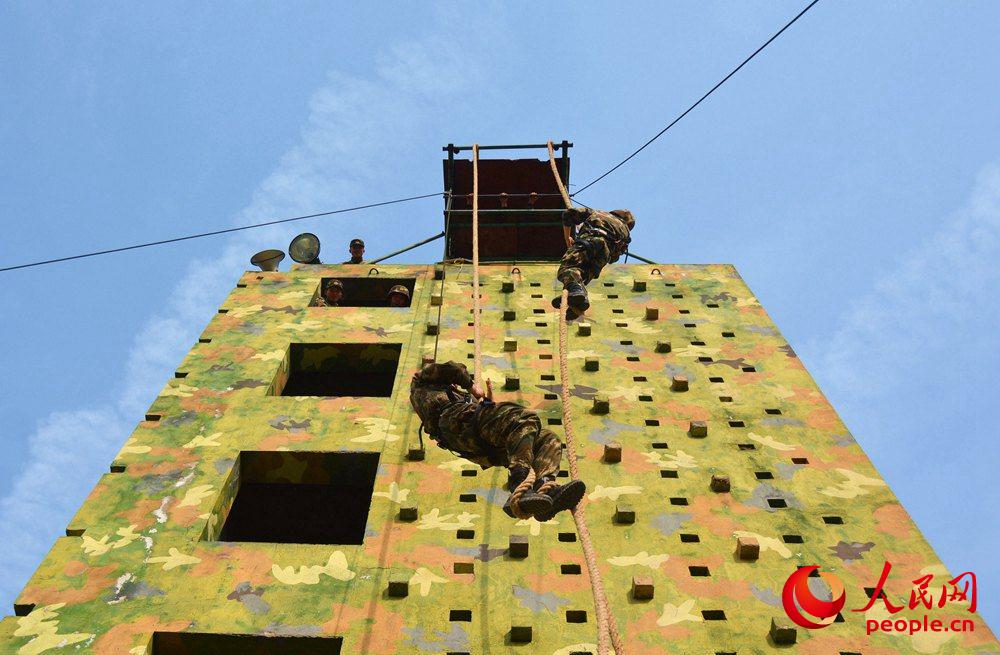 武警江西省总队攀登科目比拼 特战队员变身“蜘蛛侠”