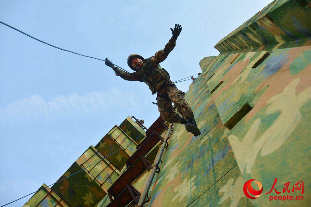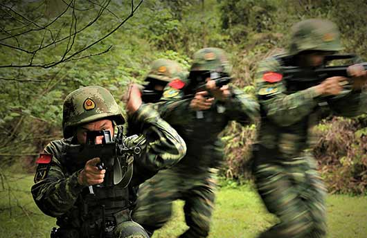 央广网3月21日消息(黄祝敏 奎子清)近日,武警广西总队河池支队特战队员们在第一季度“魔鬼周”极限训练的第一天,上演了一场水陆追击大战,按照战术背景,“暴恐分子”逃到了三公里外的水库对岸,特战队员们除了要以小组为单位扛着橡皮艇奔袭外,还必须小组协作划着橡皮艇快速到达“战斗区域”。