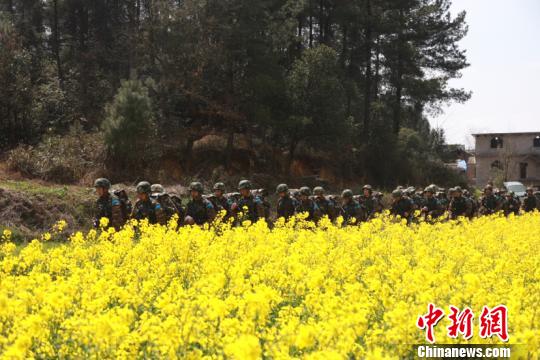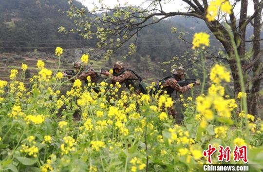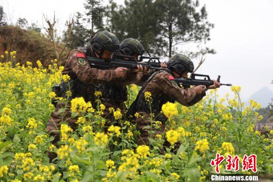 3月22日,贵州各地百花盛开,春意盎然。武警贵州总队黔南片区第一季度“魔鬼周”极限训练进入第五天。来自铜仁、黔东南、黔南和机动4个支队5个特战分队集结贵州都匀郊区,这里有温暖的阳光,在青山绿水间,有盛开的花朵,有美丽的风景,也有奋力向前的特战勇士,特战队员们在郊外生疏地形,进行简易担架搬运伤员、自由搏击、山林地搜索射击、武装追逃、武装奔袭、通过染毒区、重要目标反袭击等极限课目训练,不断提升特战队员实战能力。通讯员 黄事成