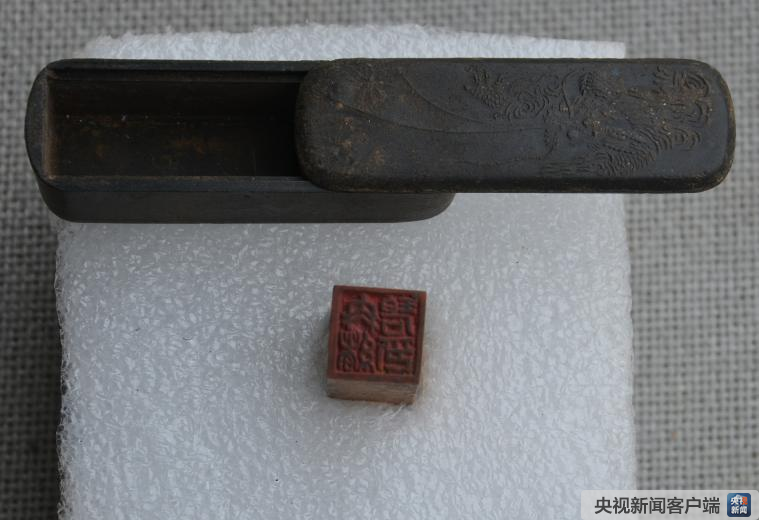 备注:含手戳盒,可抽拉,材质为木质,盒内有印泥,盒盖破损。