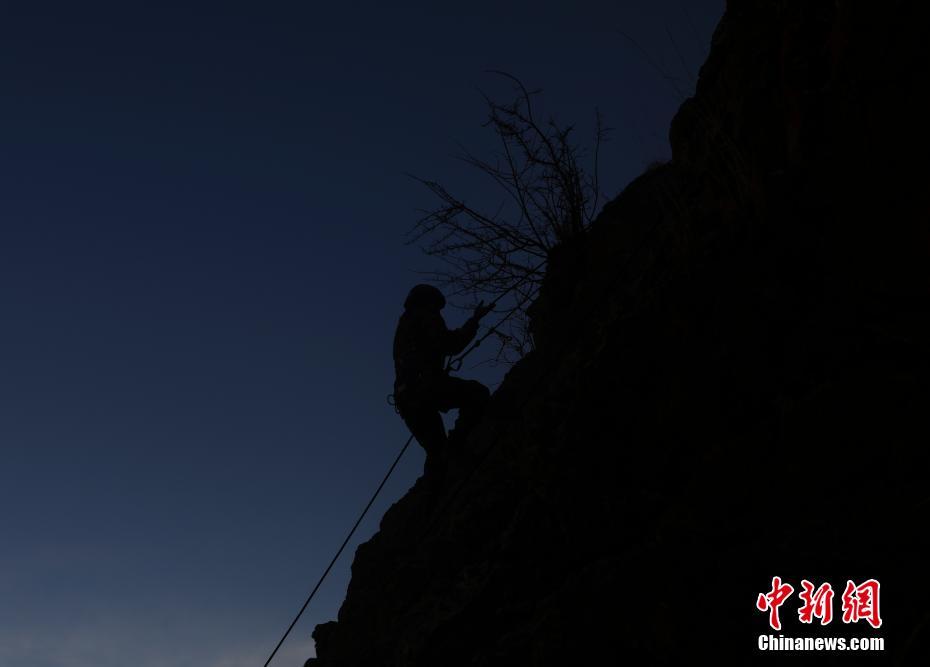 特战队员进行攀登崖壁训练。文/何蓬磊 文婧 图/韦远成