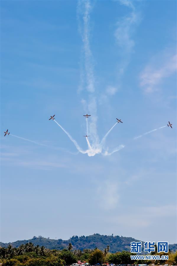 3月27日,在马来西亚兰卡威国际海事与航空展上,印度尼西亚“朱庇特”飞行表演队进行表演。第15届兰卡威国际海事与航空展26日至30日在马来西亚旅游胜地兰卡威举行。新华社记者 朱炜 摄
