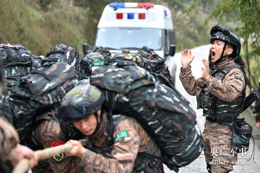 综合体能训练中,加油声、呐喊声、嘶叫声回荡在山间。(唐志勇摄)