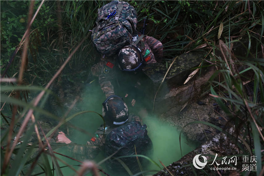 人民网重庆3月29日电 极限,什么是极限?近日,武警重庆总队2019年一季度魔鬼周极限训练在暴雨中拉开战幕,来自该总队执勤第一支队、执勤第三支队的百余名特战队员被拉到丛林深处陌生地域展开为期七天的“魔鬼周”极限训练,一场超越极限的魔鬼式训练在山城重庆火热展开。