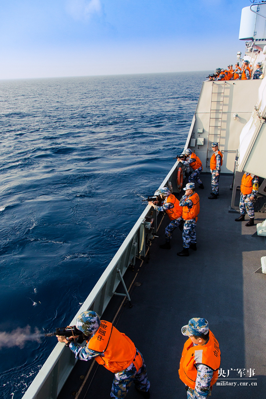 火力支援组在本舰不同地点对目标进行打击。