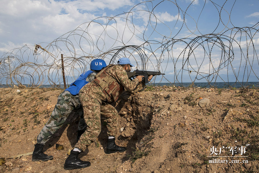 央广网3月30日消息(李志强 何云忠)当地时间3月26日下午16时许,一阵急促的哨音在200里外的乌维拉分遣队响起。中国第22批赴刚果(金)维和工兵分队乌维拉分遣队官兵与巴基斯坦维和步兵三营真纳连官兵全副武装,迅速进入战斗状态,一场由中国工兵和巴基斯坦步兵展开的联合防卫演练正式开始。