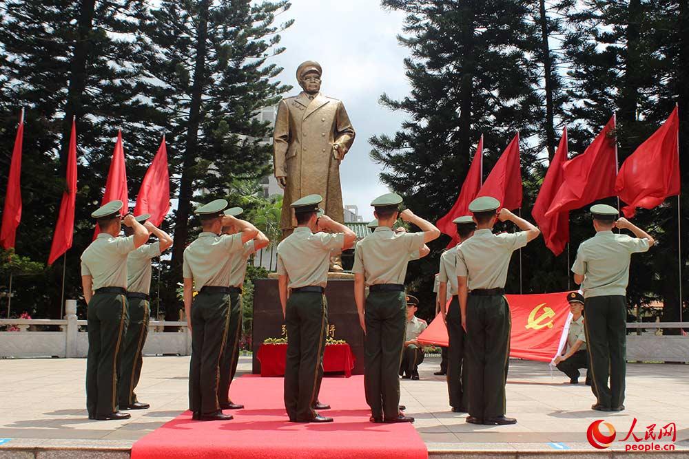 在“张云逸大将”雕像前开展重温入党誓词活动。