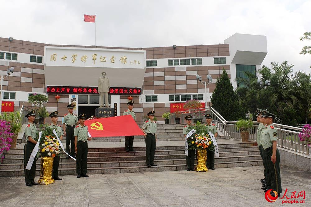 在“周士第将军”雕像前开展重温入党誓词活动。