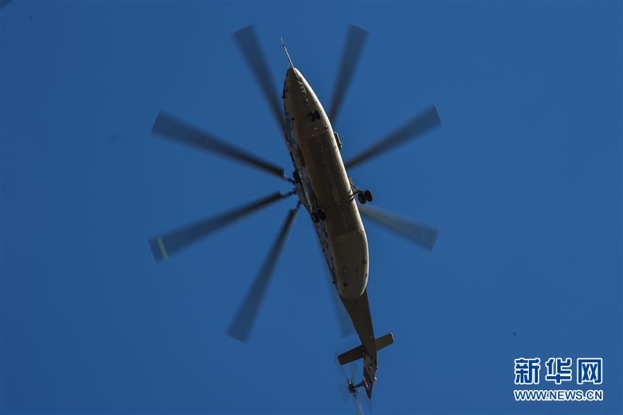 这是4月3日在俄罗斯莫斯科州拍摄的展示中的米-26T2V直升机。新华社发(叶甫盖尼·西尼岑摄)