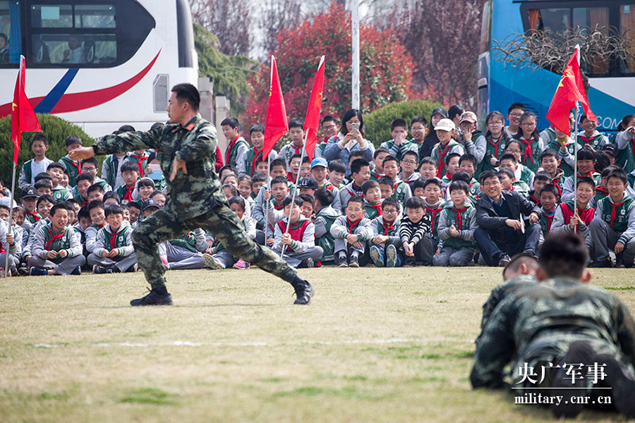 随后,上演的是官兵自编自导的武术表演、倒功操和通过障碍,为师生呈现了一幕幕只有在电视上才能看到的画面。