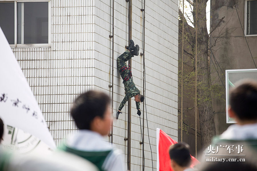 “队列演示已经结束,接下来大家最想看什么?”指导员刚提问完,很多学生指着已经在楼房前准备的兵哥哥抢答了,“看那个!看那个……”