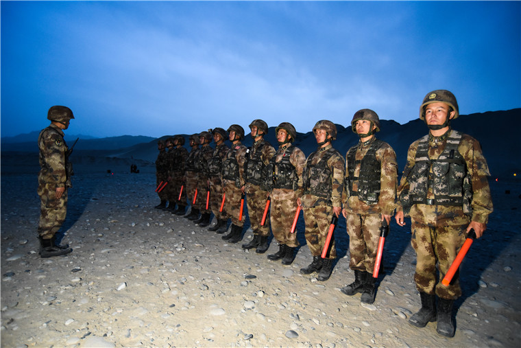 夜色微沉,指挥员正在向射击安全员传达从难组考、从严抓考的工作要求。