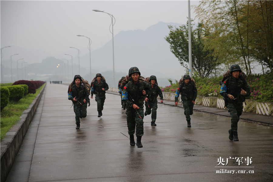 特战队员正在冒雨进行3公里武装奔袭。周敦杰摄