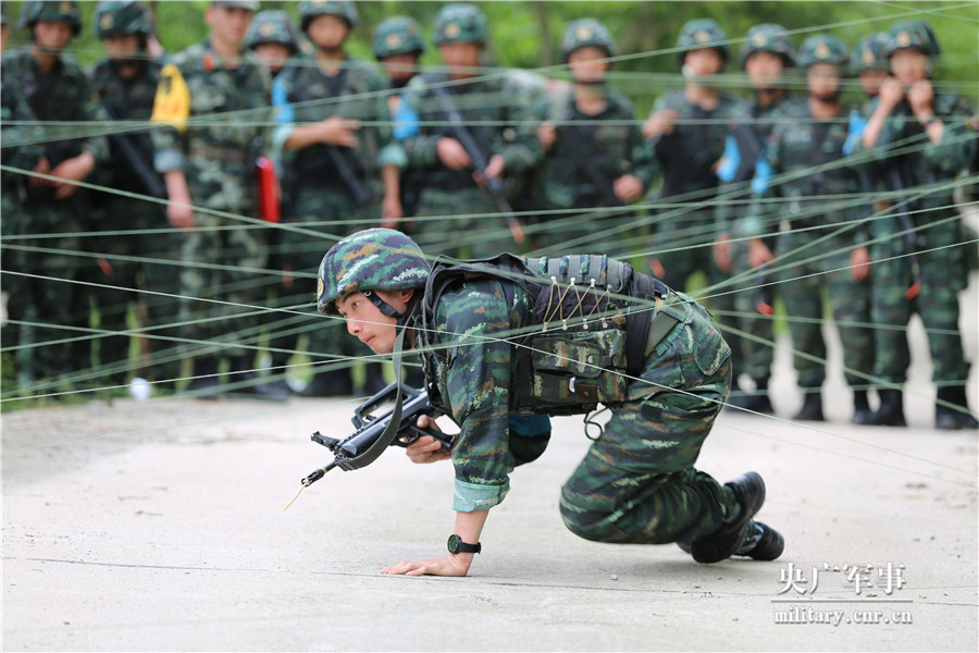 胆大心细,身体灵敏协调是特战队员必备的素质,几十秒时间通过用纵横交错的细线模拟红外线组成的10米通道,并且全身任何一个部位都不能触碰细线,这仿佛不太可能完成的任务我们的特战队员依然能够轻松过关。