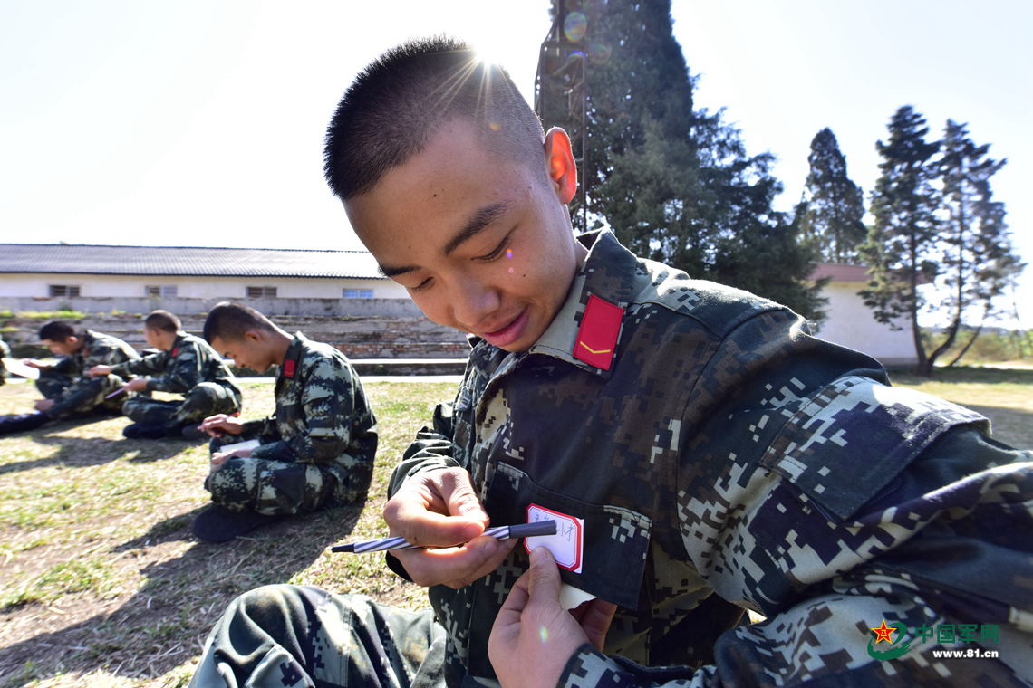 在“破冰”心理游戏中,一名战士在粘贴自己扮演的游戏角色。任贵摄