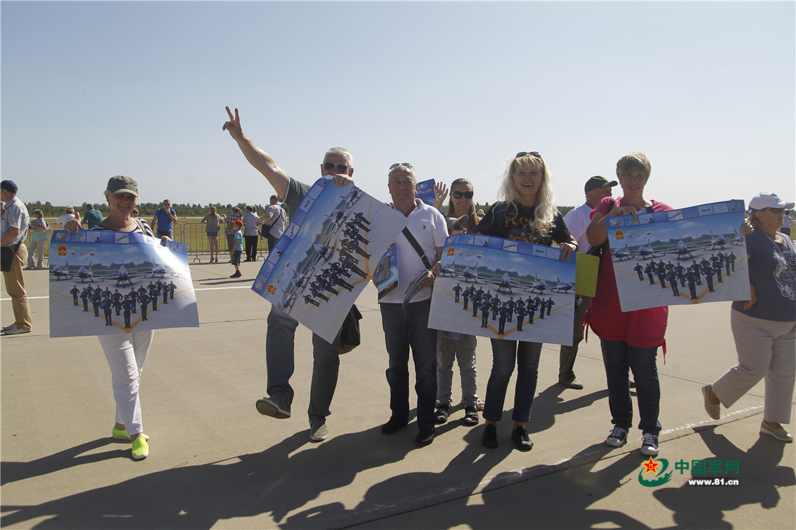 2018年,在俄罗斯国际军事技术论坛上,八一飞行表演队震撼亮相,当地群众欢呼雀跃。资料图