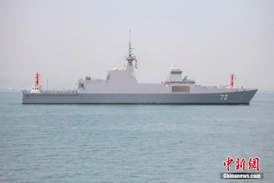 4月19日上午,新加坡海军“坚强”号护卫舰抵达青岛。这是参加中国人民解放军海军成立70周年多国海军活动到访的第一艘外国海军舰艇。中新社记者 李纯 摄