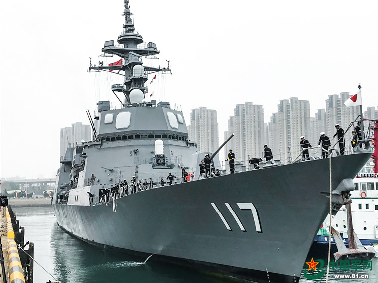 4月21日上午,日本海上自卫队秋月级驱逐舰“凉月号”(JS Suzutsuki 舷号117)抵达青岛大港码头,参加中国海军成立70周年多国海军活动。