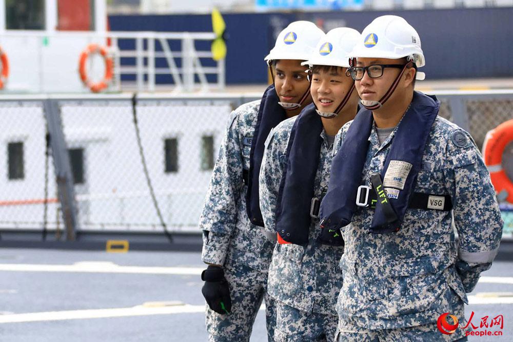 新加坡海军“坚强号”护卫舰上的官兵。蒲海洋 摄