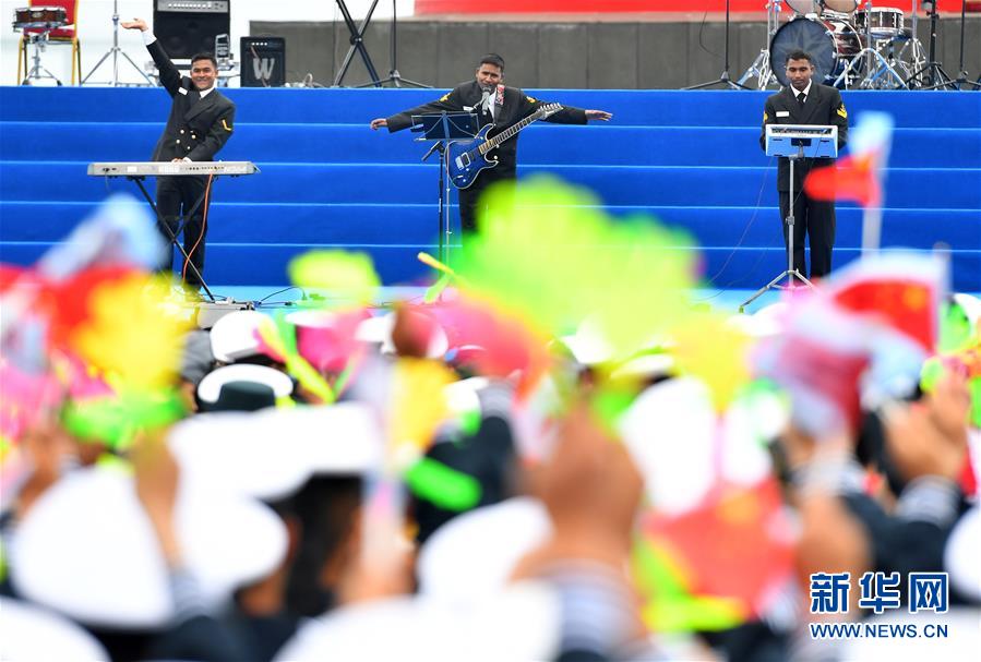 联合军乐展示以“大海乐章·和平交响”为主题,分为“和平之海”“和平之师”“和平之歌”3个篇章。来自中国、泰国、越南、孟加拉国、印度的海军军乐队登台演奏经典曲目,中外舰艇官兵、青岛市民等1200余人观看演出。这是来自孟加拉国的海军军乐队在演奏曲目。新华社记者 朱峥 摄