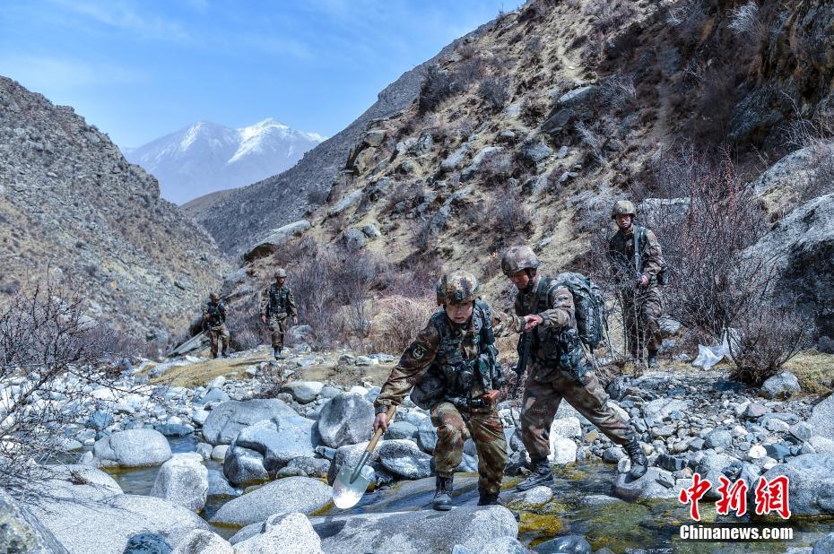 近日,西藏军区某旅开展高寒山地综合演练。据悉,此次综合演练跨昼夜27小时,参训官兵山路行军超过50公里,海拔爬升超过1000米,翻越最高的山峰海拔达到5300米,行军负重超过30公斤。同时在演练过程还需完成单兵掩体构筑、崖壁攀登、冰川攀登、伏击与反伏击、夜间战场救护、5公里山地越野等8个科目考核。图为行军途中参训官兵相互帮助。徐倩峰 摄