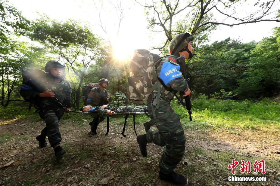 近日,武警武汉支队开展了为期7天6夜的“魔鬼周”极限训练。特战队员在每天训练16个小时以上,人均负重不低于25公斤,徒步行军总里程不少于150公里的情况下,开展了融合战术、技能、体能、心理于一体的30多个课目训练。图为山地转运伤员。杜昊 摄