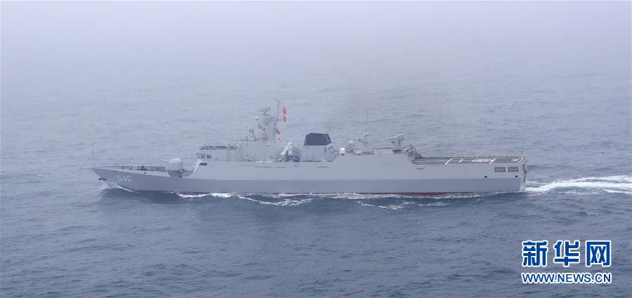 4月23日,庆祝中国人民解放军海军成立70周年海上阅兵活动在青岛附近海空域举行。这是“乌海”号导弹护卫舰。 新华社记者 琚振华 摄