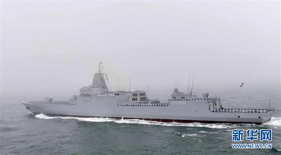 4月23日,庆祝中国人民解放军海军成立70周年海上阅兵活动在青岛附近海空域举行。这是“南昌”号导弹驱逐舰接受检阅。新华社记者 郭绪雷 摄