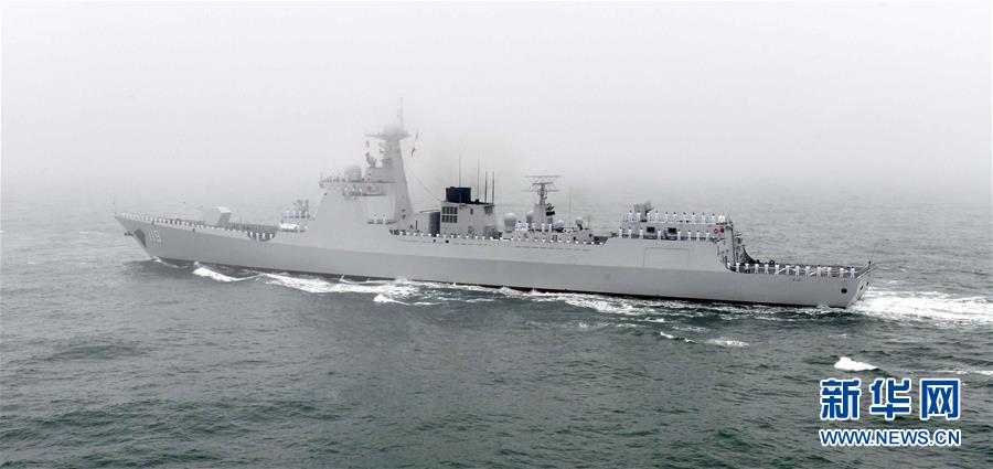 4月23日,庆祝中国人民解放军海军成立70周年海上阅兵活动在青岛附近海空域举行。这是“贵阳”号导弹驱逐舰接受检阅。新华社记者 郭绪雷 摄