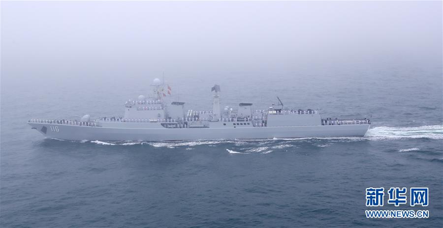 4月23日,庆祝中国人民解放军海军成立70周年海上阅兵活动在青岛附近海空域举行。这是“石家庄”号导弹驱逐舰。新华社记者 琚振华 摄