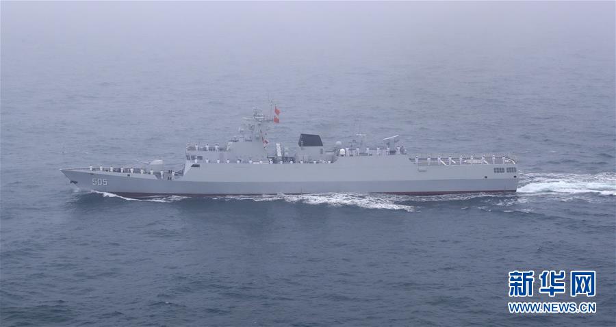 4月23日,庆祝中国人民解放军海军成立70周年海上阅兵活动在青岛附近海空域举行。这是“秦皇岛”号导弹护卫舰。新华社发(尚文斌 摄)