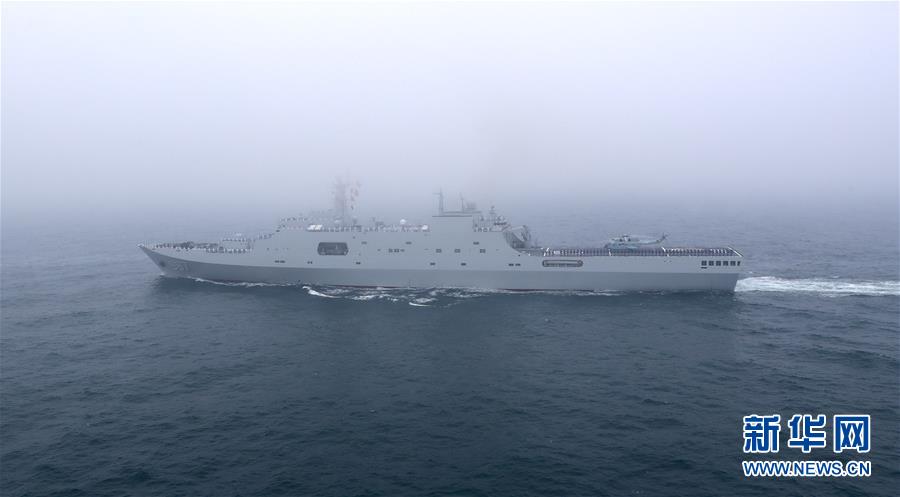 4月23日,庆祝中国人民解放军海军成立70周年海上阅兵活动在青岛附近海空域举行。这是“五指山”号登陆舰。新华社记者 琚振华 摄