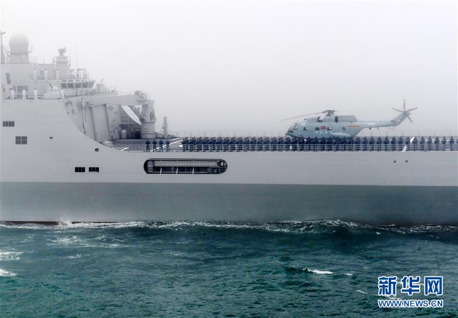 4月23日,庆祝中国人民解放军海军成立70周年海上阅兵活动在青岛附近海空域举行。这是“五指山”号登陆舰。新华社记者 李紫恒 摄