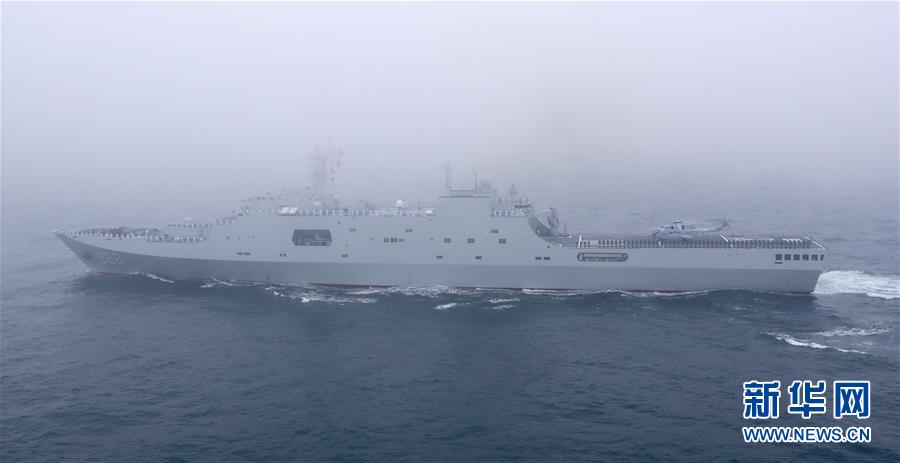 4月23日,庆祝中国人民解放军海军成立70周年海上阅兵活动在青岛附近海空域举行。这是“沂蒙山”号登陆舰。新华社记者 琚振华 摄
