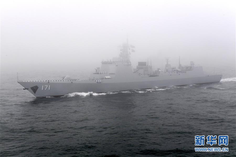 4月23日,庆祝中国人民解放军海军成立70周年海上阅兵活动在青岛附近海空域举行。这是“海口”号导弹驱逐舰。新华社记者 李紫恒 摄