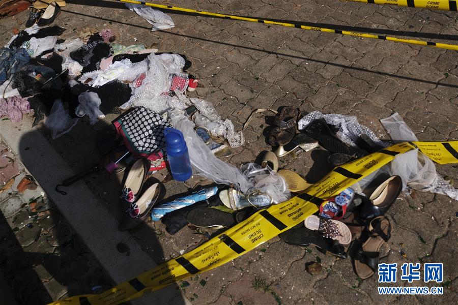 4月23日,在斯里兰卡尼甘布,遭到爆炸袭击的教堂外散落着鞋子、衣服等物品。 新华社发(王申 摄)
