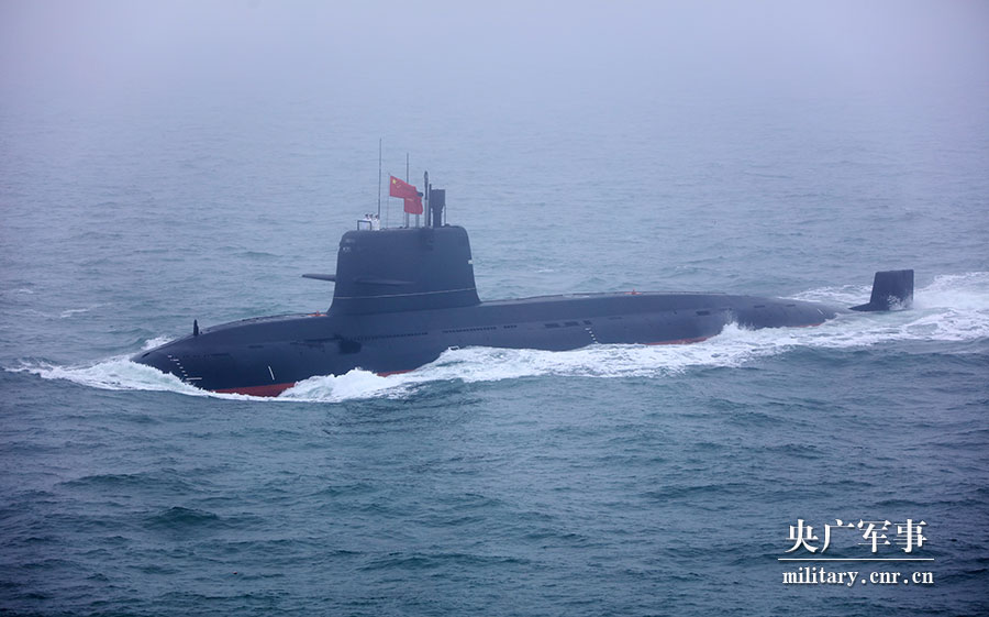4月23日,庆祝中国人民解放军海军成立70周年海上阅兵活动在青岛附近海空域举行。图为参加海上阅兵的中国海军常规潜艇。李唐 摄