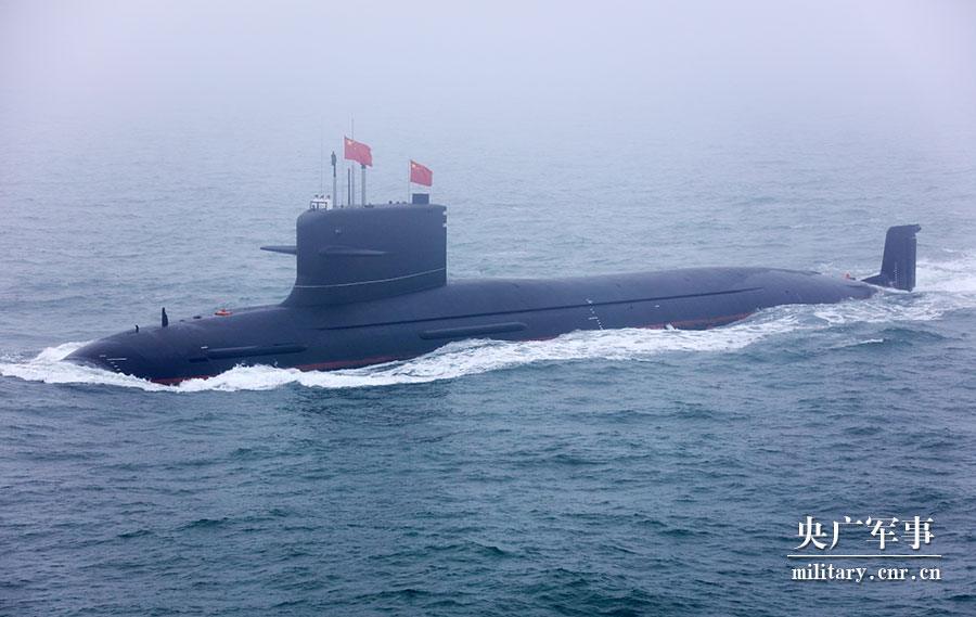 4月23日,庆祝中国人民解放军海军成立70周年海上阅兵活动在青岛附近海空域举行。图为参加海上阅兵的中国海军攻击型核潜艇。李唐 摄