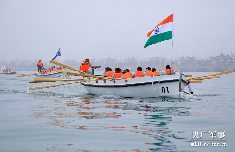 70周年多国海军活动舢板比赛在奥帆中心举行