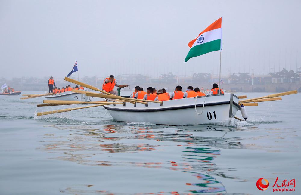 人民网青岛4月24日电 (记者 黄子娟)今天上午,中国人民解放军海军成立70周年多国海军活动舢板比赛在青岛奥帆中心举行。来自澳大利亚、文莱、印度、日本、马来西亚、菲律宾、中国等7个国家的8支代表队参加比赛。